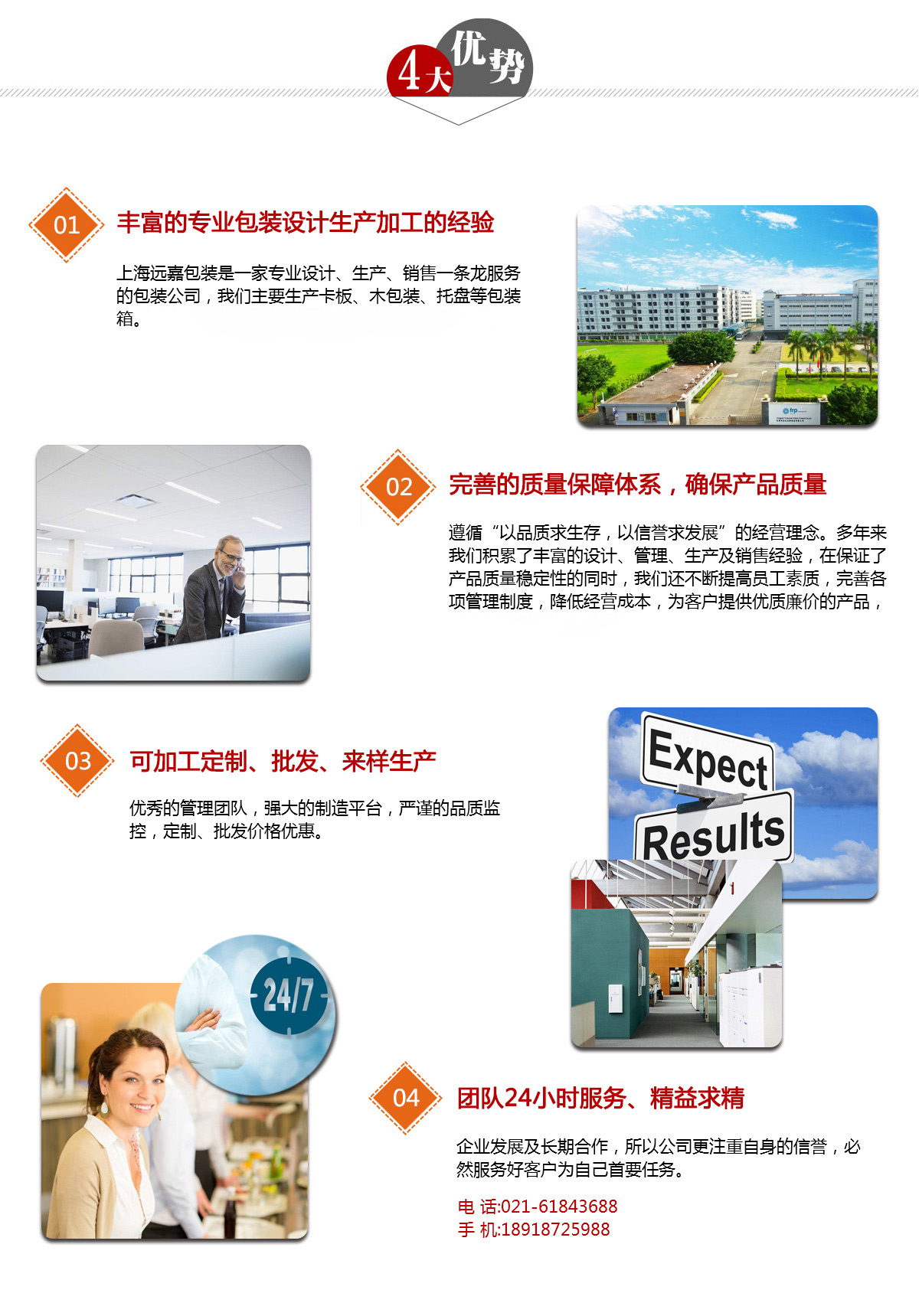 上海遠(yuǎn)嘉包裝技術(shù)有限公司擁有數(shù)年包裝設(shè)計(jì)生產(chǎn)經(jīng)驗(yàn)。為客戶設(shè)計(jì)定制各類出口包裝箱,木箱包裝,免熏蒸包裝箱,鋼帶箱,扣件包裝箱,花格箱,大型設(shè)備包裝箱,實(shí)木熏蒸包裝箱,木托盤(pán),熏蒸及免熏蒸托盤(pán),熱縮膜包裝等。